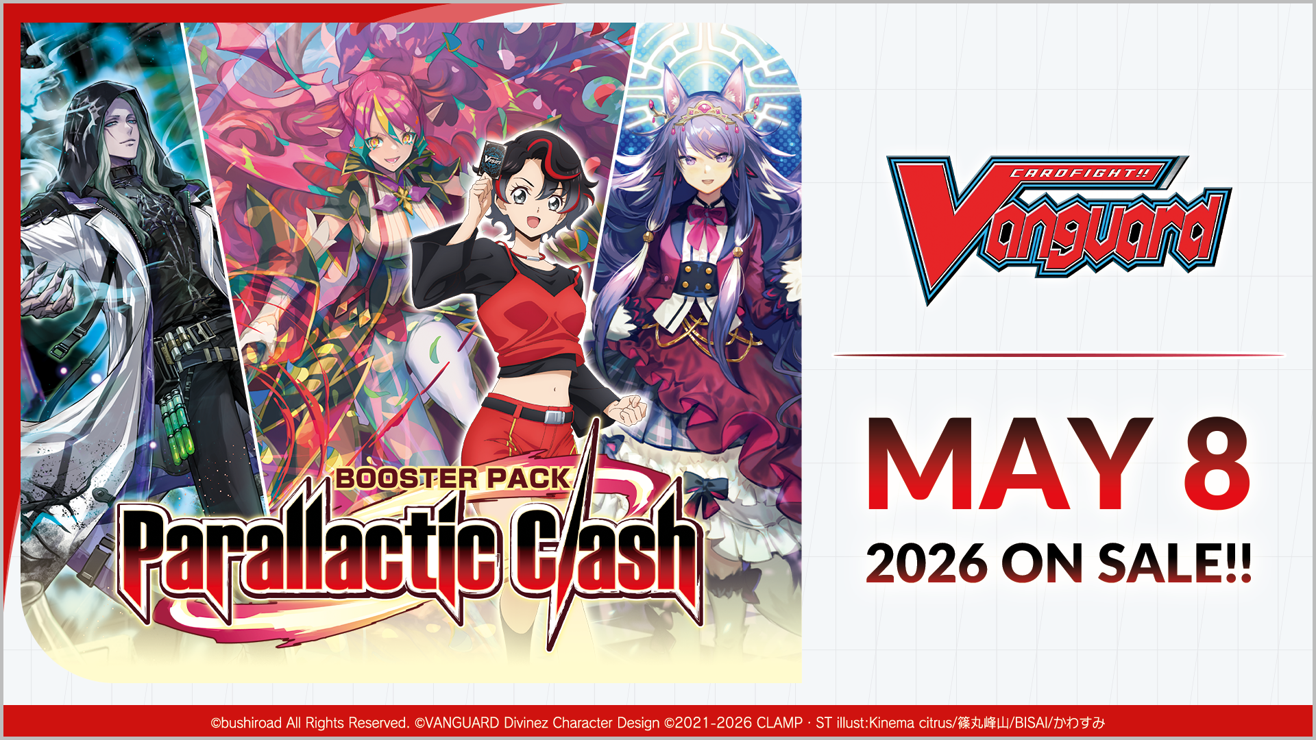 We are pleased to share that Cardfight!! Vanguard Booster Pack 13: Parallactic Clash will be released on May 8, 2026. Thank you for your continued support and patience.